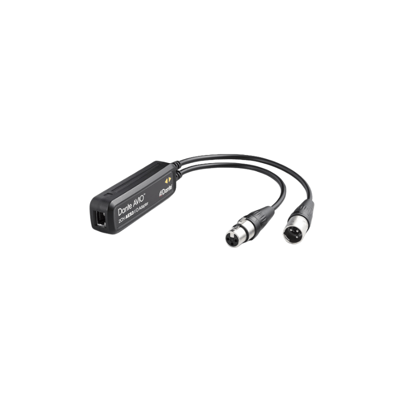 The Dante AVIO AES3 adapter is a complete, high-performance Dante device, delivering all the automation and ease of use that have made Dante the most popular audio networking solution worldwide. The Dante AVIO AES3 adapter is automatically discovered and ready to use when connected, and no separate power supplies are required—just use a common PoE (Power over Ethernet) switch and any Dante AVIO adapter is ready to go.