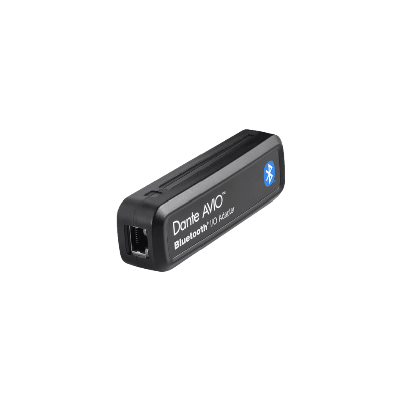 Wirelessly send and receive audio between a computer or mobile device and any Dante-enabled device over a standard IP network with the Audinate Dante AVIO 2×1 Bluetooth I/O Adapter, a full-featured Dante device that supports 2×1 channels of 24-bit / 48 kHz audio. This functionality makes the adapter ideal for routing phone calls through a conferencing system, piping music from a smartphone into the Dante network, and more.