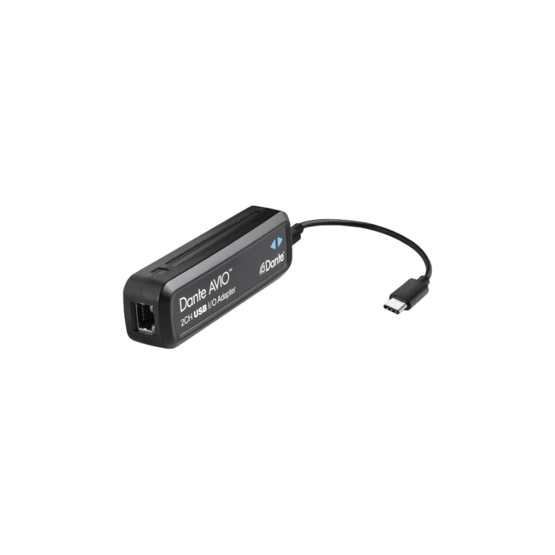 Instantly connect a Mac or Windows computer to a Dante audio network with the Audinate Dante AVIO 2×2 USB Type-C I/O Adapter, a full-featured Dante device that supports 2×2 channels of 24-bit / 48 kHz bidirectional audio. This functionality makes the adapter ideal for recording stereo network audio to a DAW, piping music from your music library into the Dante network, and more.