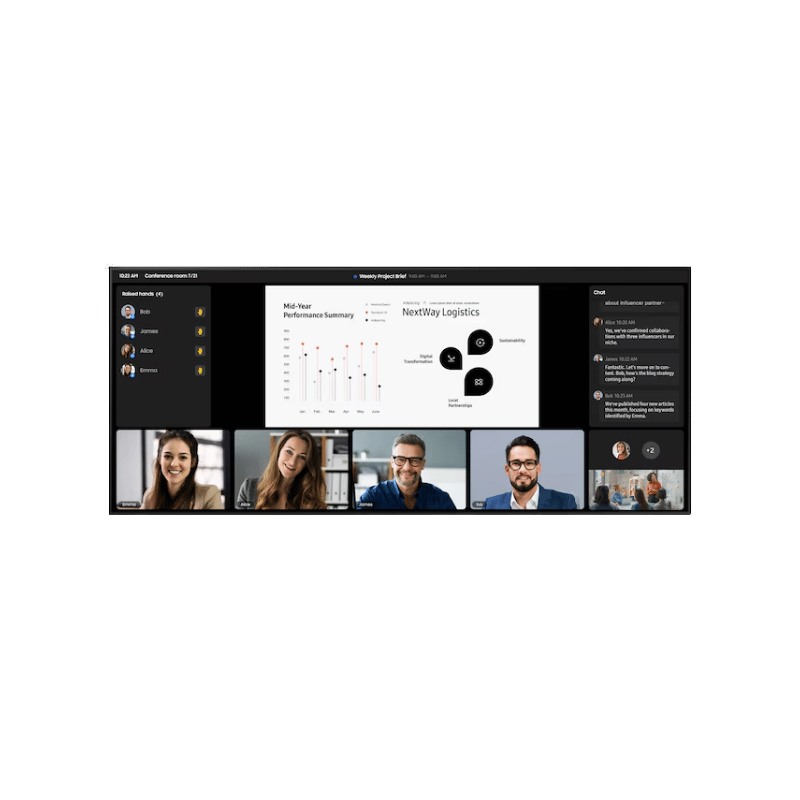 Take your meetings to the next level with the 105-inch supersized display. Its expansive, ultra-wide screen eliminates the need for multiple displays, offering a seamless, uninterrupted view without the distracting borders between screens.